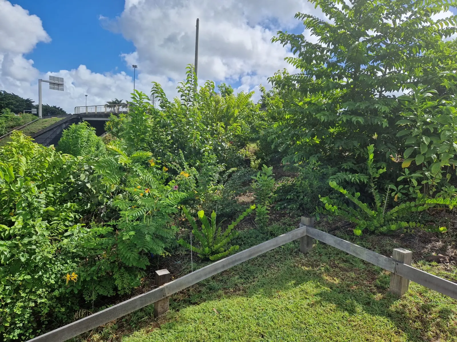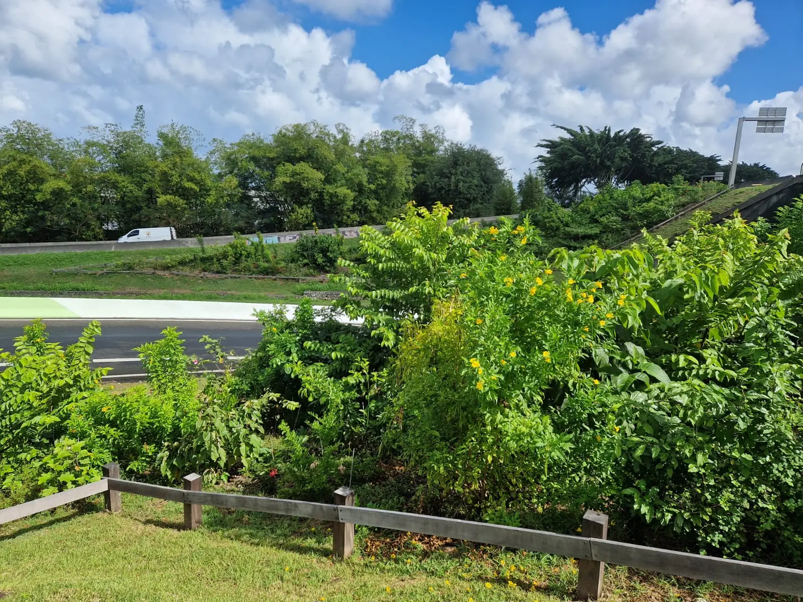 La Trame verte routière du tronçon Beausoleil-Destrellan vient renforcer la connectivité entre les différentes zones humides (ravine Gourde Liane, Ravine Belcourt, Fond Budan) et la zone boisée de Morne Bernard , isolées les unes des autres par la RN2 et l’urbanisation qui l’accompagne.